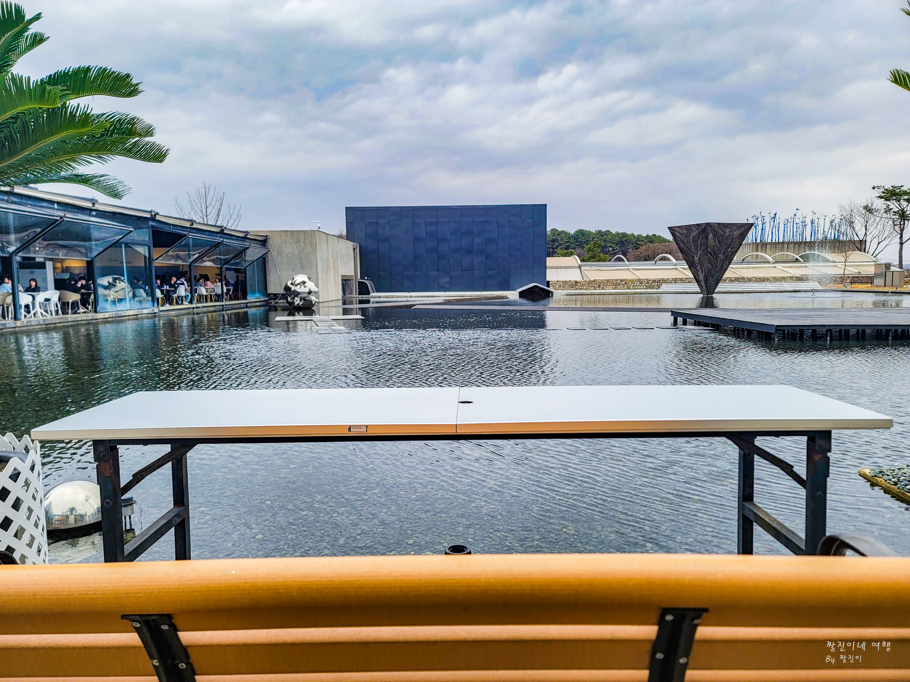 앉자마자 눈 앞에 펼쳐진 호수(?)가 보이는 창가 자리에 앉았어요. 창문이 부분적으로 있는 오픈형 테라스라 개방감이 너무 좋았답니다. 여기저기 마련된 야외 테이블 중에서 마음에 드는 곳을 고를 수 있는 자유로움도 좋았어요.